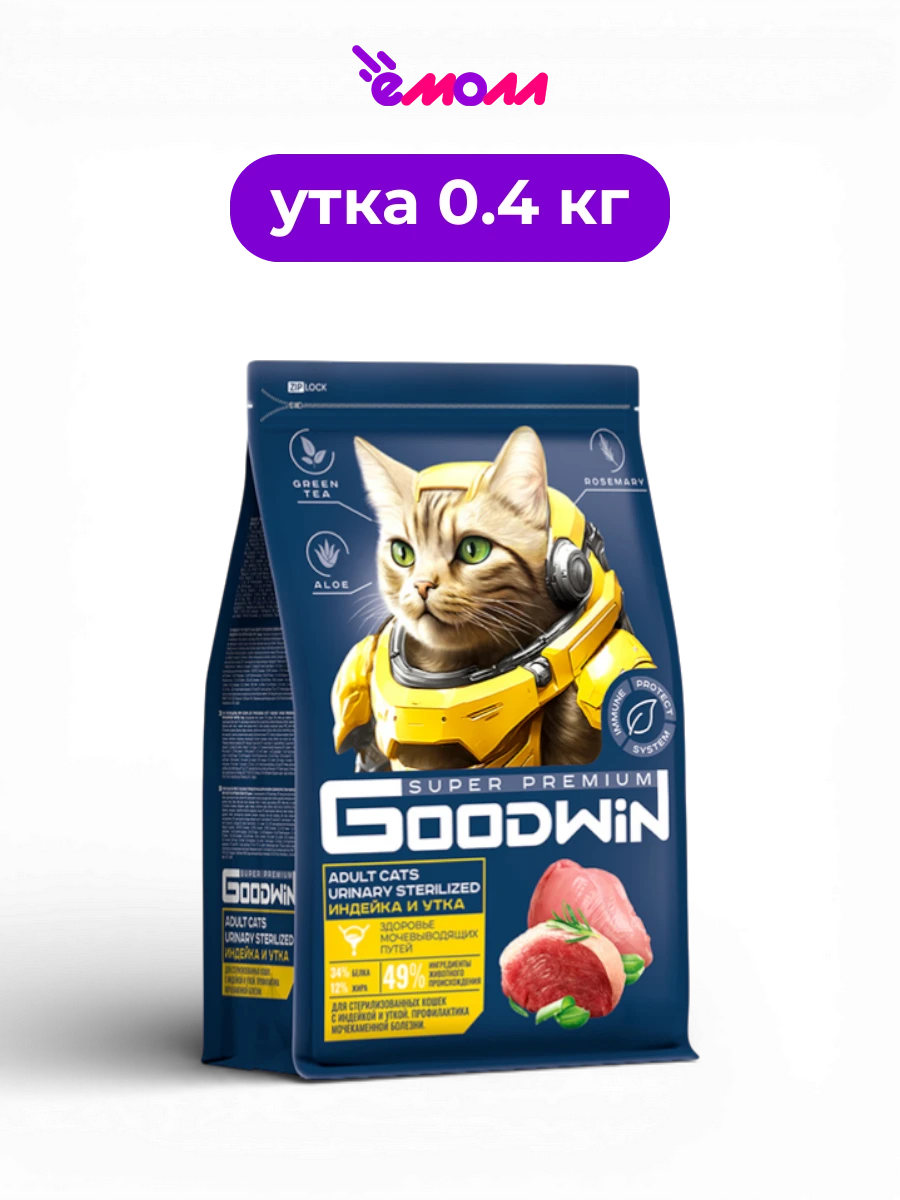 Goodwin сухой корм для стерилизованных кошек для профилактики мочекаменной болезни с индейкой и уткой 0.4 кг