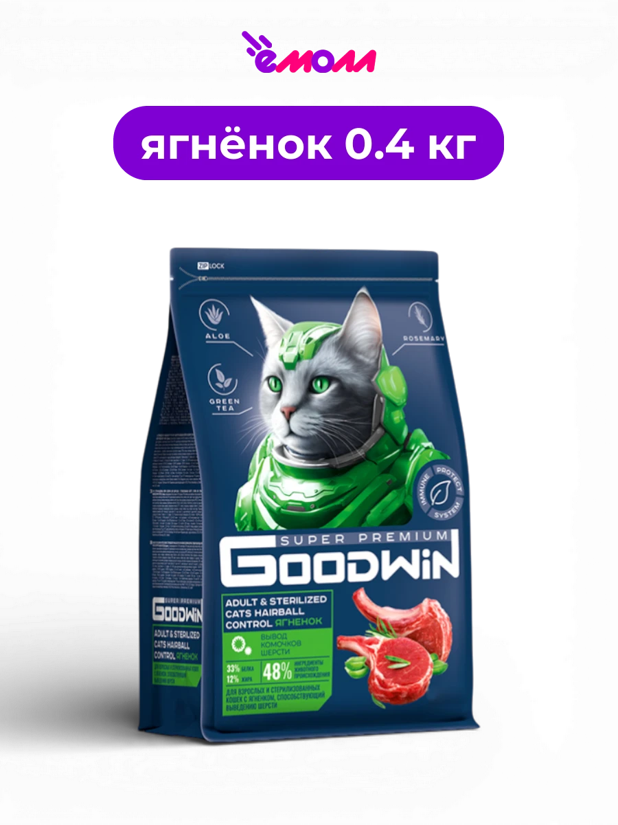 Goodwin сухой корм для стерилизованных кошек для выведения шерсти ягненок 0.4 кг
