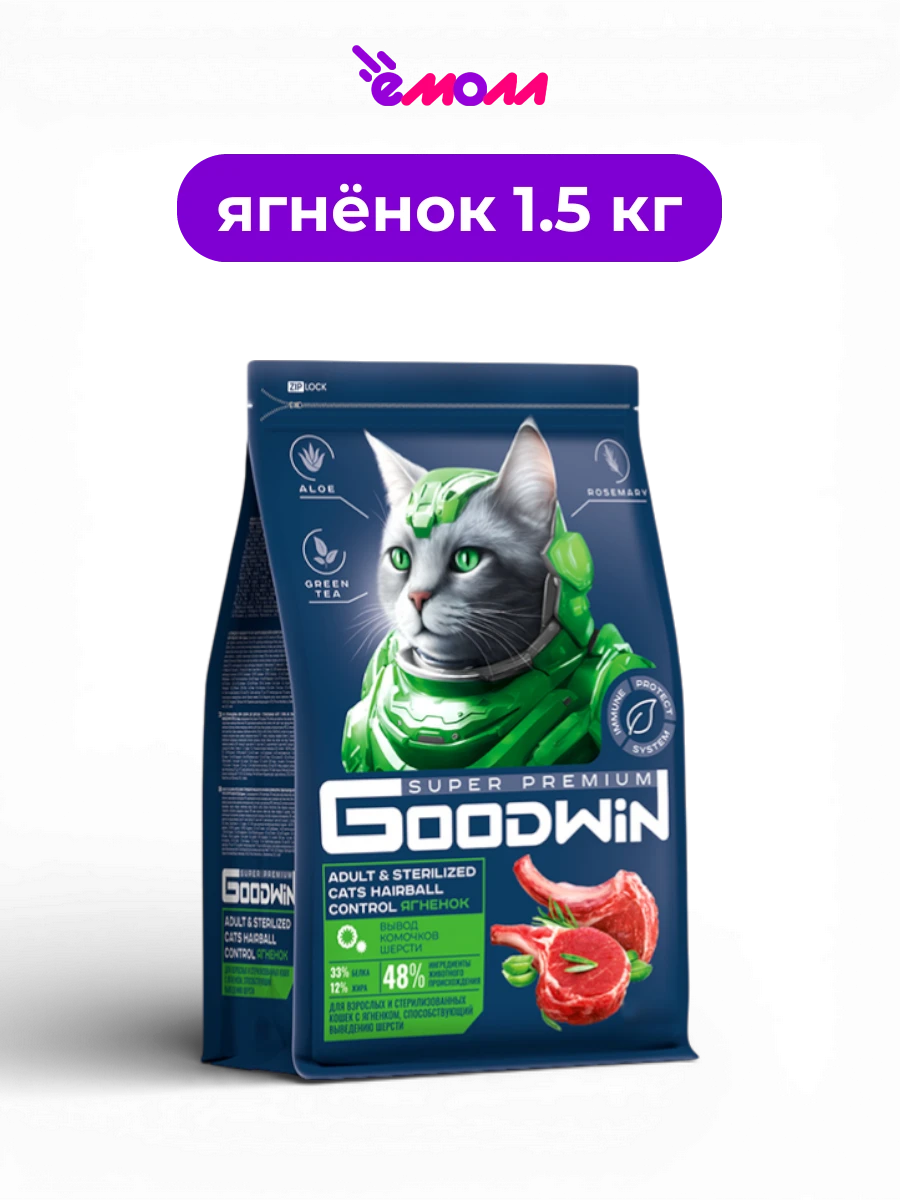 Goodwin сухой корм для стерилизованных кошек для выведения шерсти ягненок 1.5 кг