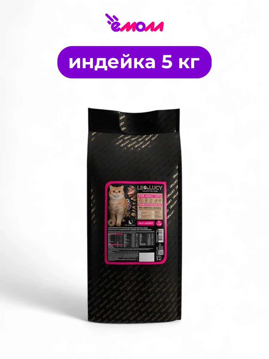 LEO&LUCY сухой корм для кошек холистик мясное ассорти с биодобавками подходит для стерилизованных 5 кг