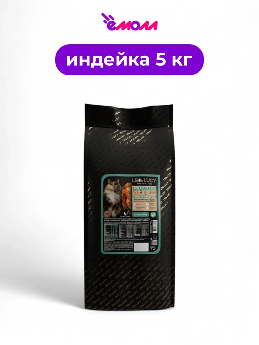 LEO&LUCY сухой корм для кошек холистик с индейкой ягодами и биодобавками подходит для стерилизованных и пожилых кошек 5 кг