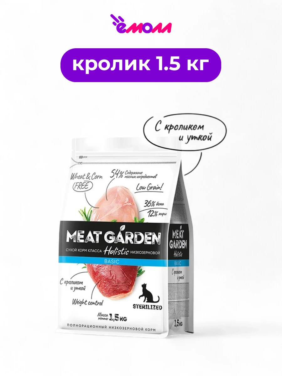 Meat Garden корм для кошек стерилизованных Кролик с уткой 1,5 кг