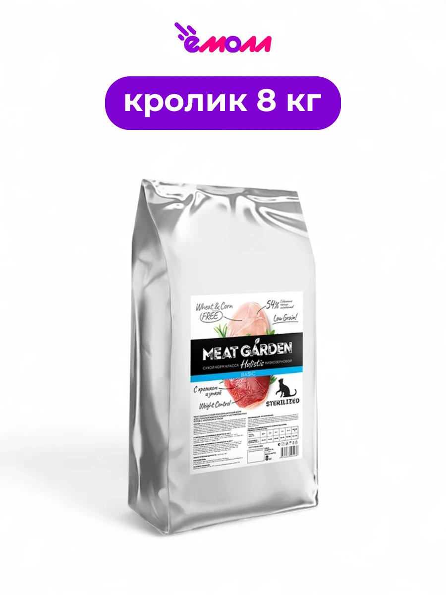 Meat Garden корм для кошек стерилизованных с кроликом и уткой 8 кг
