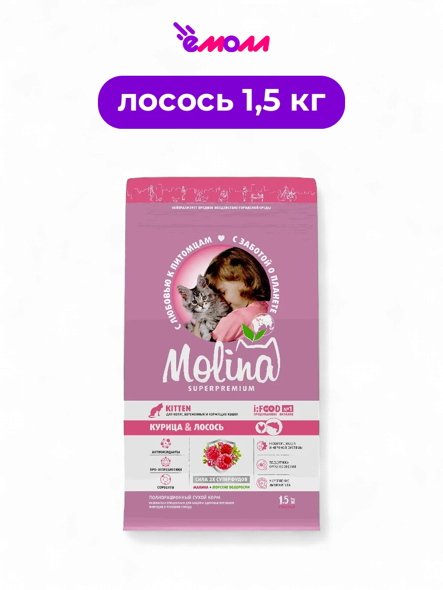 Molina сухой корм для котят с курицей и лососем Cat Kitten Chicken With Salmon 1,5 кг