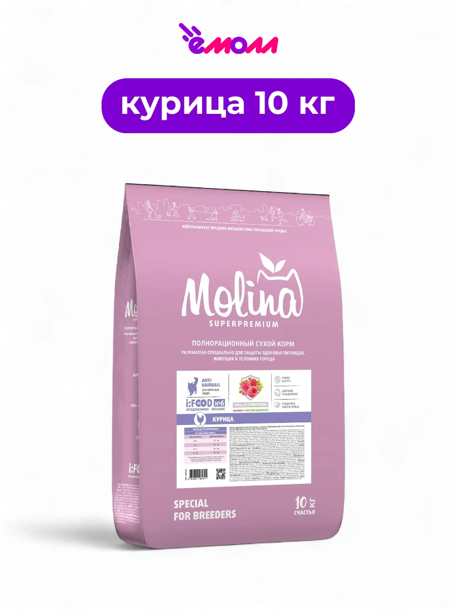 Molina сухой корм для взрослых кошек Cat Anti Hairball Chicken 10 кг