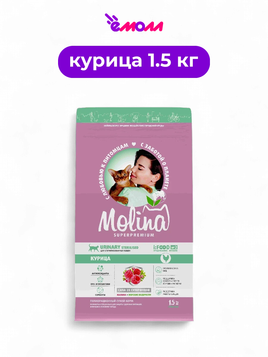 Molina сухой корм с курицей для взрослых стерилизованных кошек Sterilised Urinary Chicken 1.5 кг