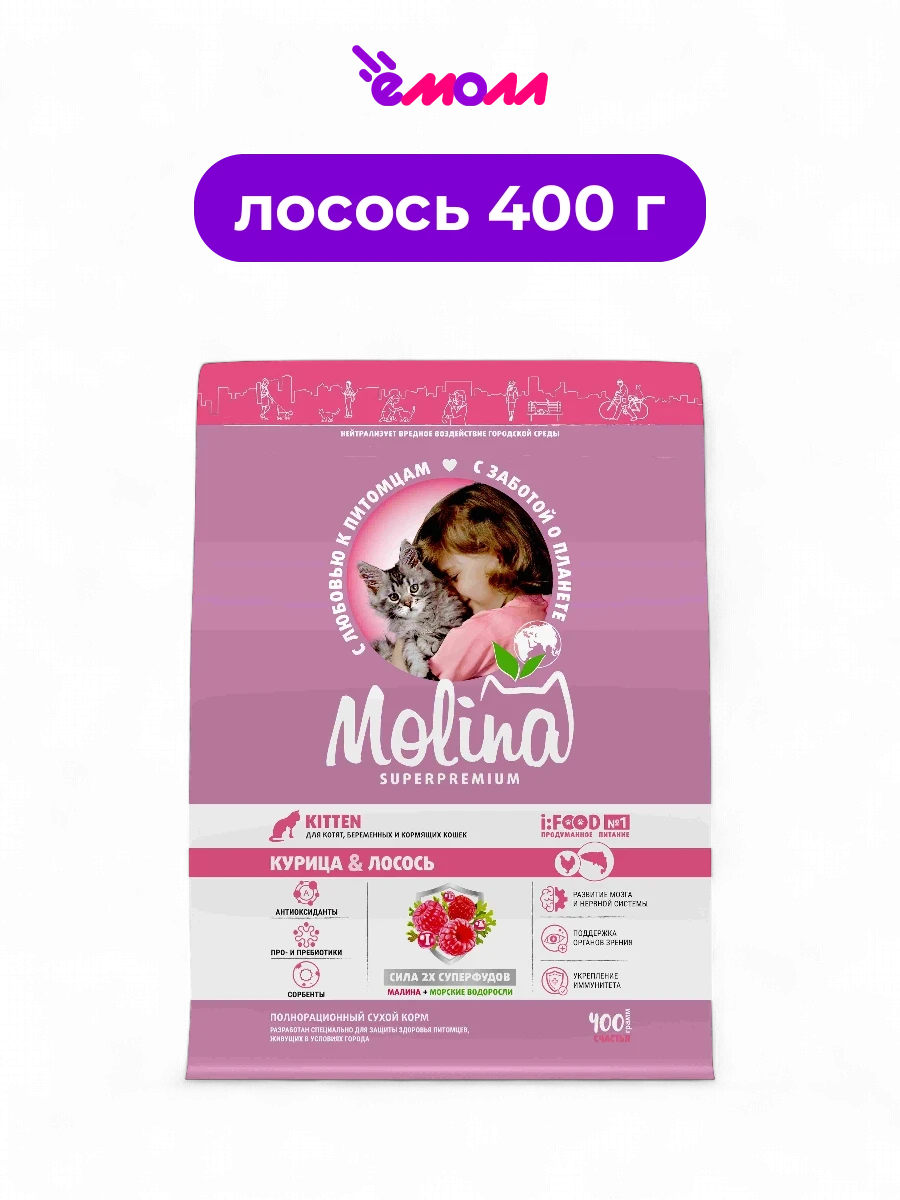 Molina сухой корм с курицей и лососем для котят Cat Kitten Chicken With Salmon 0,4 кг