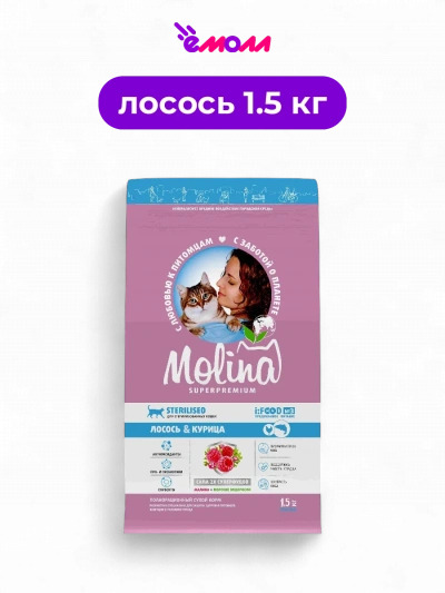 Molina сухой корм с лососем и курицей для взрослых стерилизованных кошек Sterilised Salmon and Chicken 1.5 кг