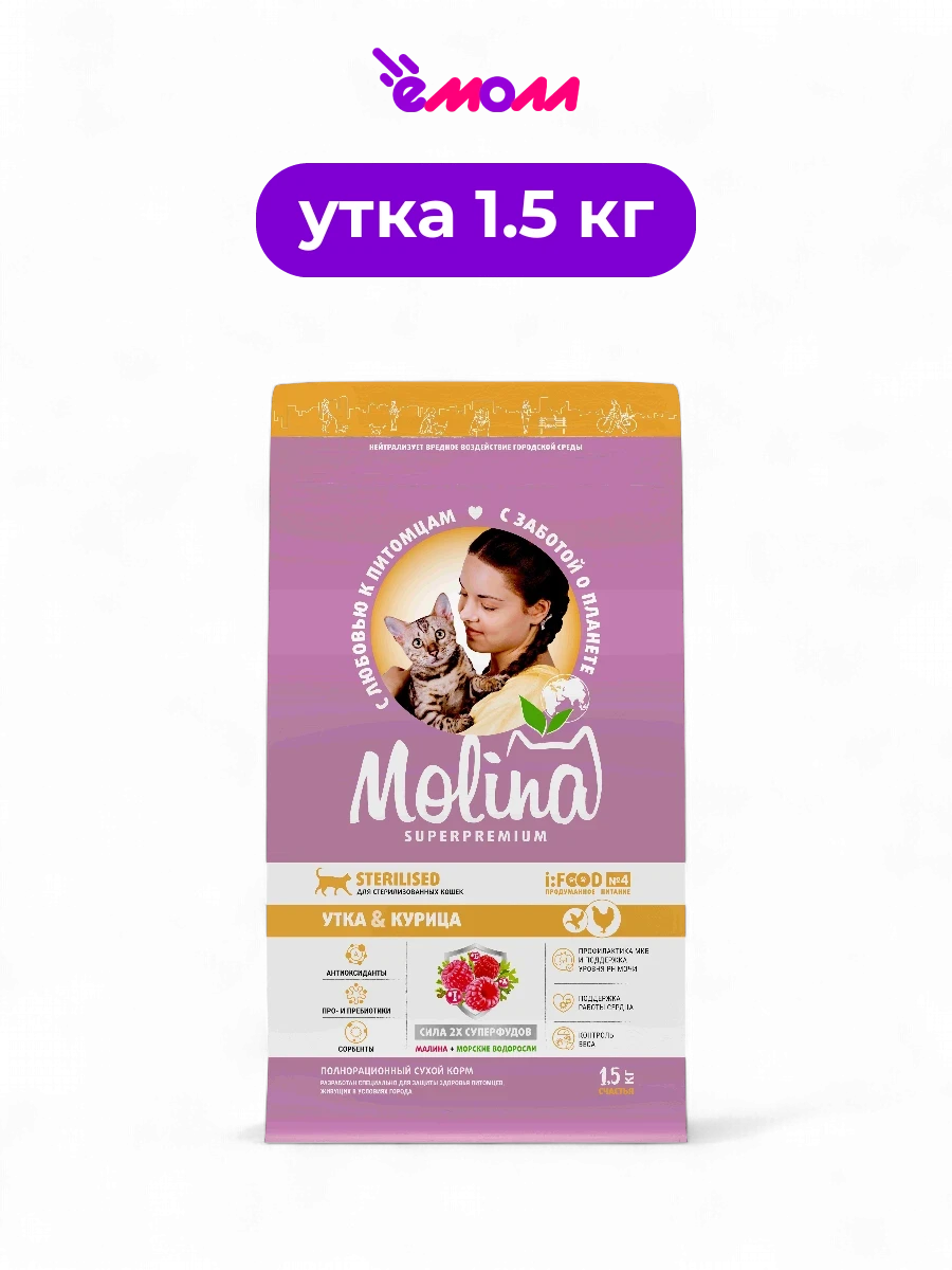 Molina сухой корм с уткой и курицей для взрослых стерилизованных кошек Cat Sterilised Duck and Chicken 1.5 кг