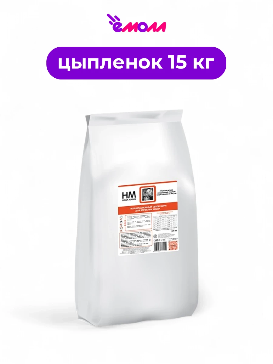 Наша Марка корм для взрослых кошек с цыпленком и рисом полнорационный 15 кг