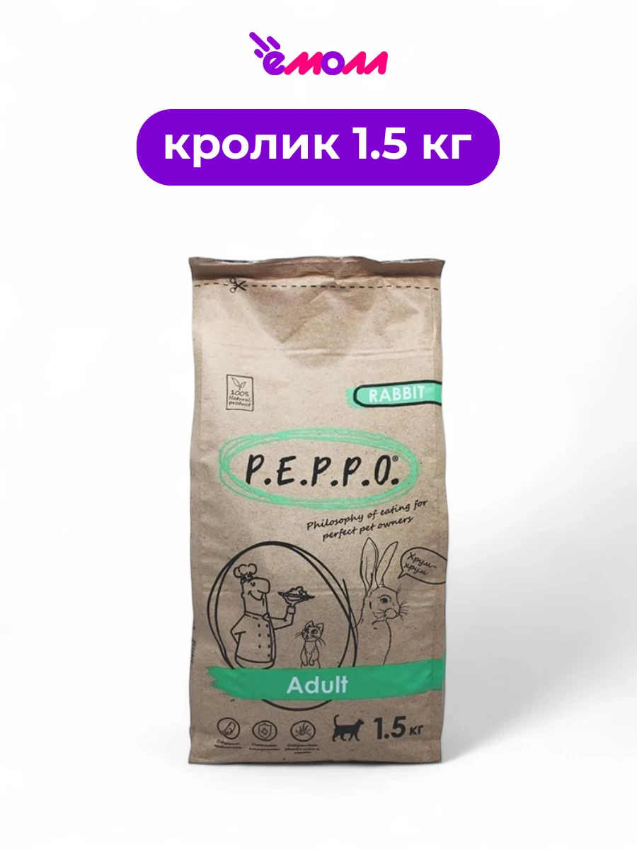 P.E.P.P.O. — полнорационный сухой корм для взрослых кошек с кроликом. Корм разработан с учетом потребностей организма взрослых кошек и содержит тщательно подобранные ингредиенты для поддержания здоровья и активности питомца.