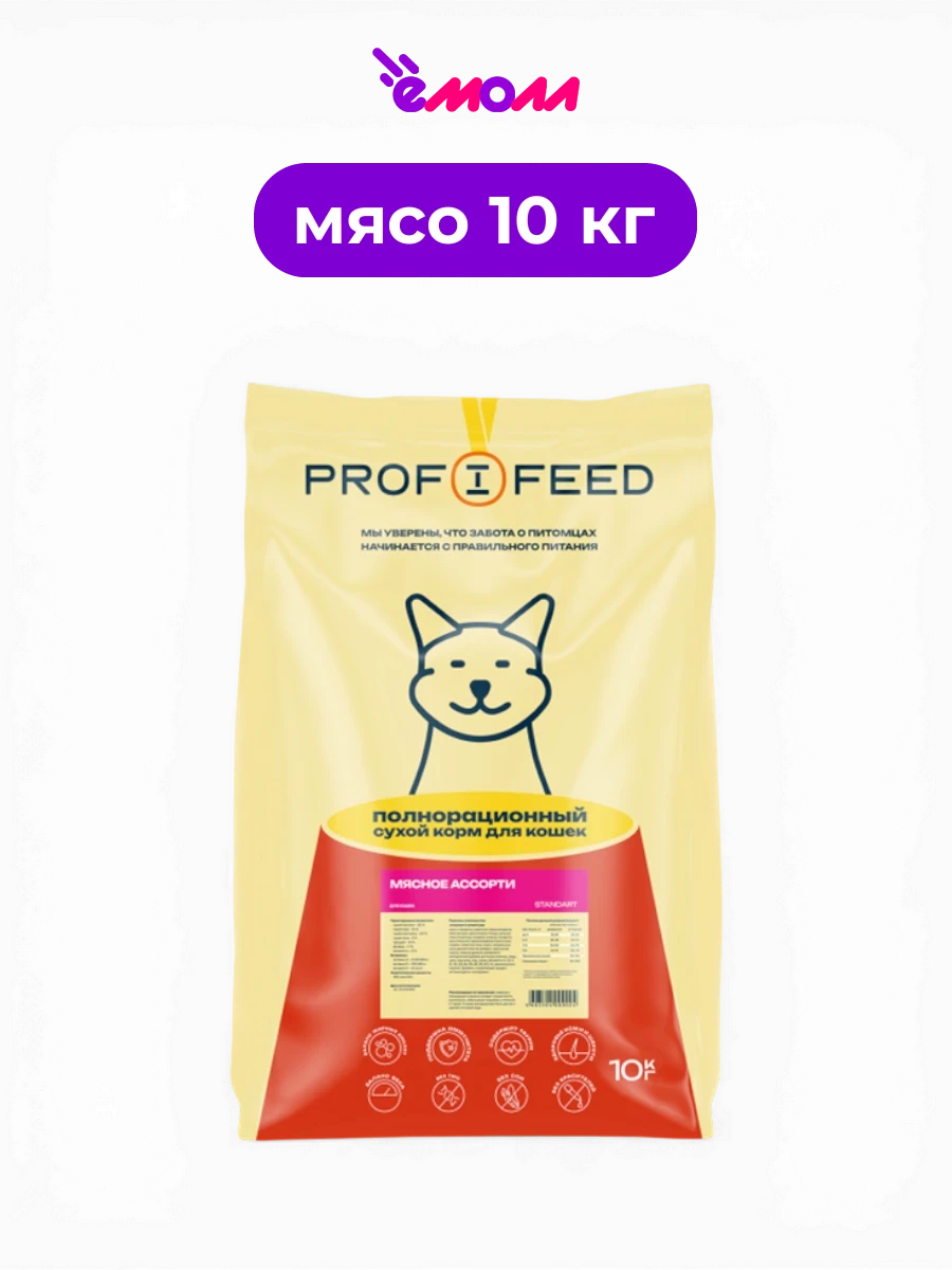 PROFIFEED корм сухой для взрослых кошек всех пород с таурином и витаминами Мясное ассорти 10 кг