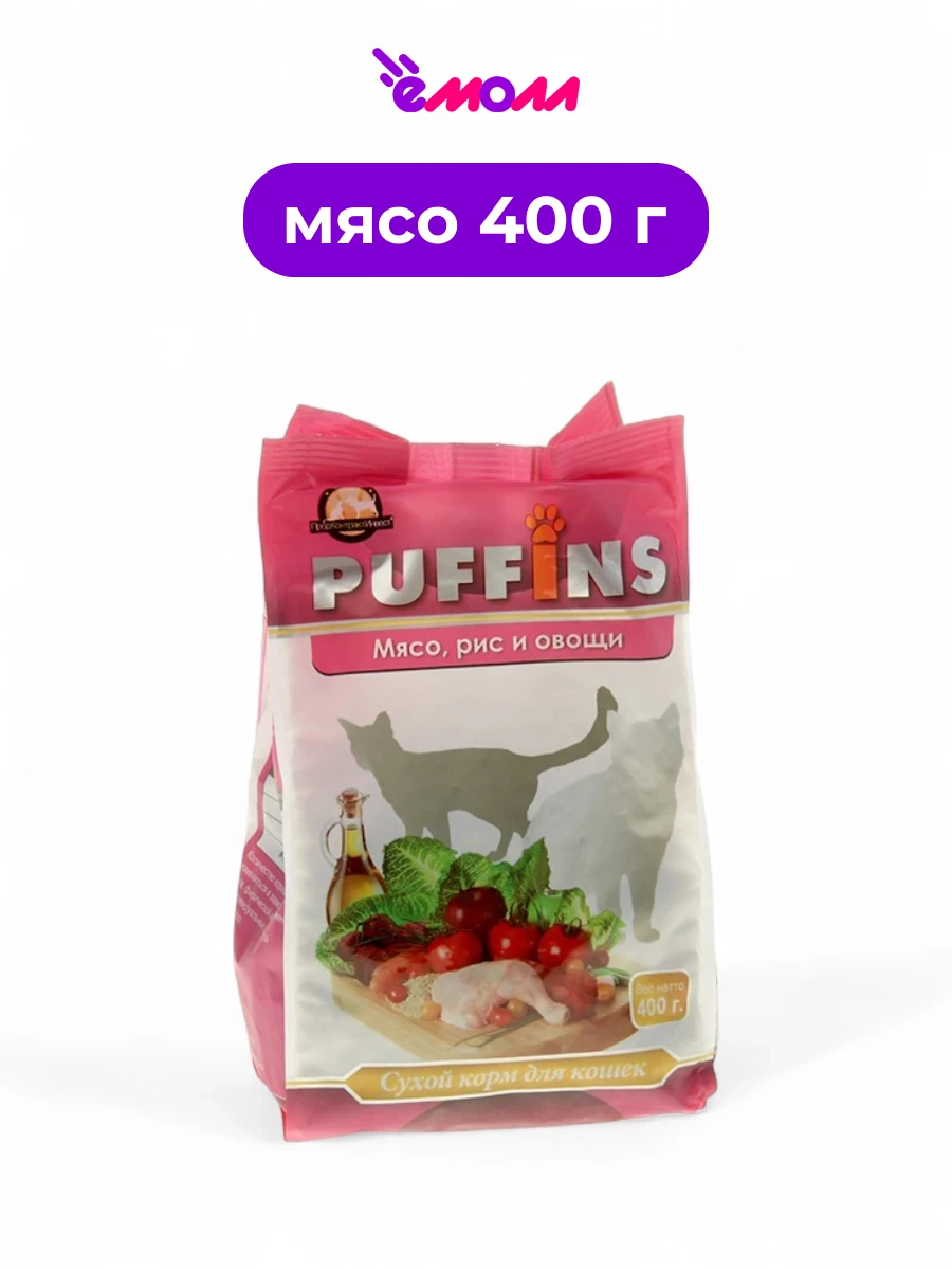 PUFFINS сухой корм для кошек мясо рис овощи 400 г