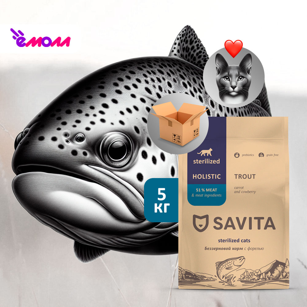 Savita беззерновой корм для стерилизованных кошек с форелью 5 кг