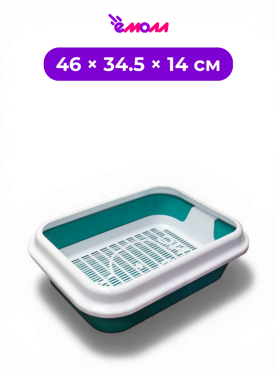 Высокий борт защищает от разбрасывания наполнителя, если кошка любит активно «копать». Лоток подходит для кошек средних и крупных размеров, а сетка также помогает снизить риск поедания наполнителя любопытными питомцами.