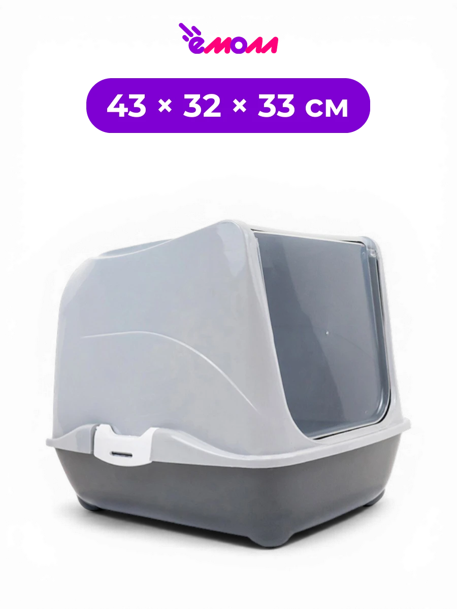 Закрытая форма снижает разбрасывание гранул вокруг лотка, а корпус помогает удерживать запахи внутри. Полупрозрачная откидная дверца свободно открывается в обе стороны, обеспечивая удобный вход.