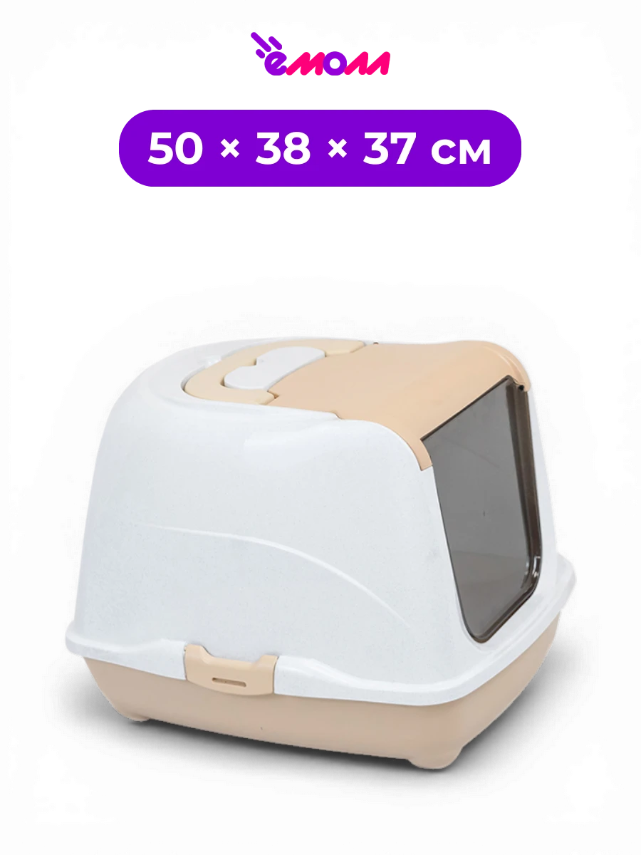 Дарэленд туалет закрытый домик для кошек из полипропилена бежевый мрамор ZooM 50 см × 38 см × 37 см