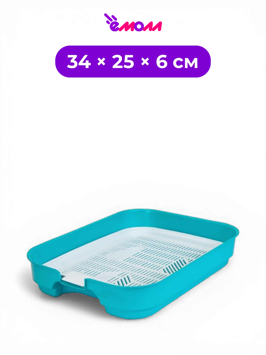 Дарэлл туалет лоток для кошек с сеткой открытый пластиковый Евро малый 34 × 25 × 6 см бирюзовый