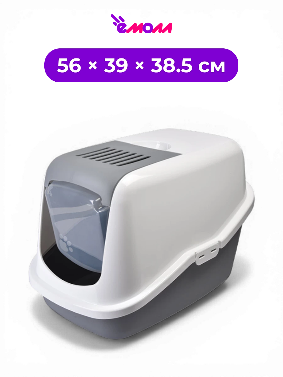 Главная особенность модели — откидная передняя панель: вместе с дверцей приподнимается часть крышки, поэтому убирать наполнитель совком можно быстро и без снятия верхнего кожуха.