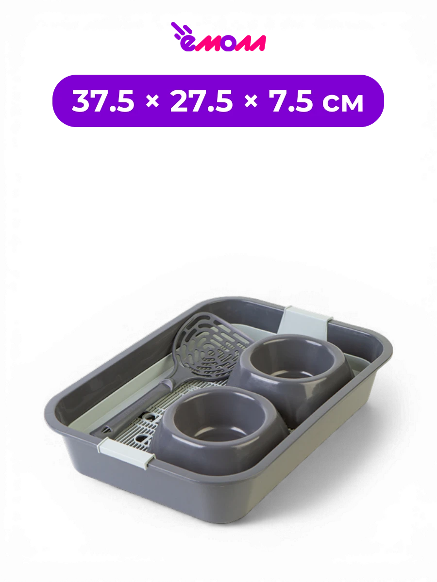 СИБИРСКАЯ КОШКА набор для кошек лоток туалет с сеткой совок и двойная миска графит Для Любимца 37.5 × 27.5 × 7.5 см