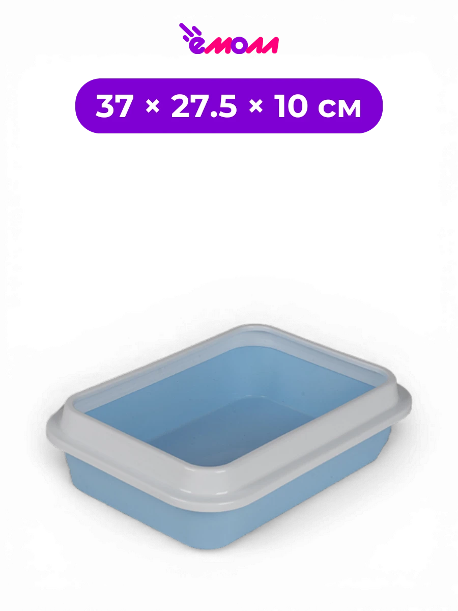 СИБИРСКАЯ КОШКА туалет для кошек глубокий с съемным бортиком небесный Премиум 37 × 27.5 × 10 см