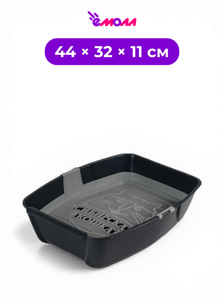 СИБИРСКАЯ КОШКА туалет для кошек глубокий с сеткой графитовый Евро 44 × 32 × 11 см