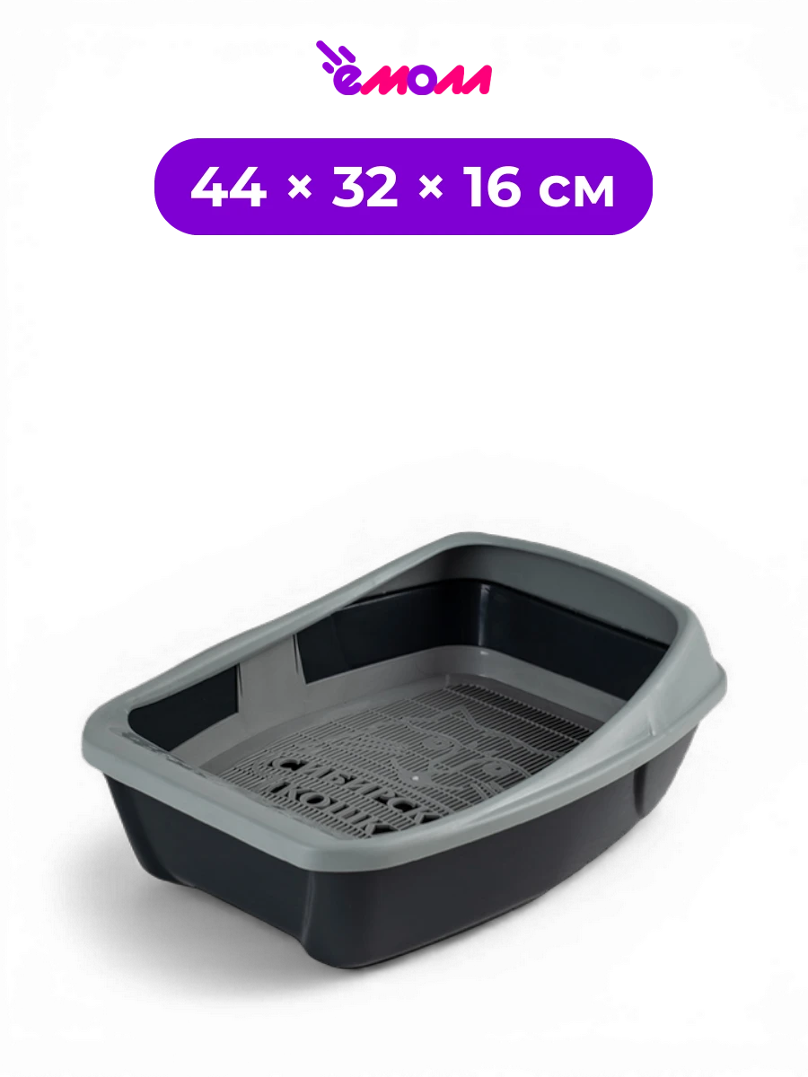 СИБИРСКАЯ КОШКА туалет для кошек глубокий с сеткой и съёмным бортом графит Евро 44 × 32 × 16 см