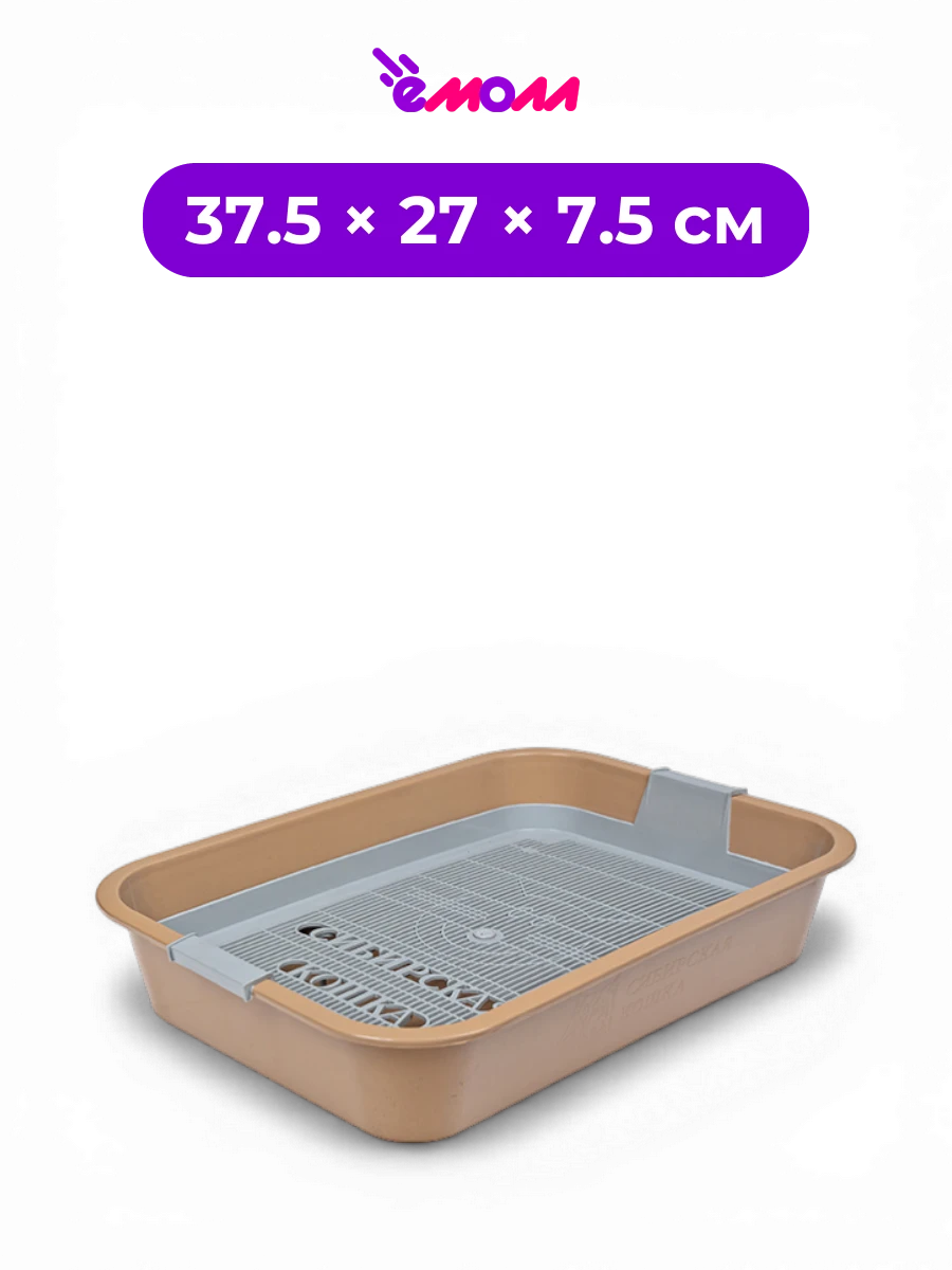 СИБИРСКАЯ КОШКА туалет для кошек открытый с пластиковой сеткой капучино 37.5 × 27 × 7.5 см полипропилен