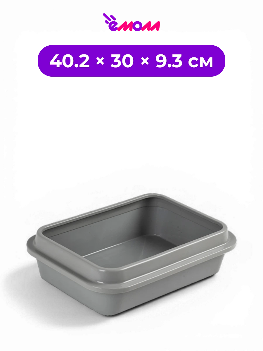 СИБИРСКАЯ КОШКА туалет для кошек открытый с сеткой и высоким бортиком пластиковый пепельный МЯУС 40.2 × 30 × 9.3 см