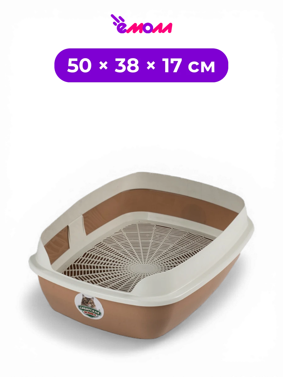 СИБИРСКАЯ КОШКА туалет для кошек открытый с сеткой и высоким бортом Альбус 50 × 38 × 17 см капучино