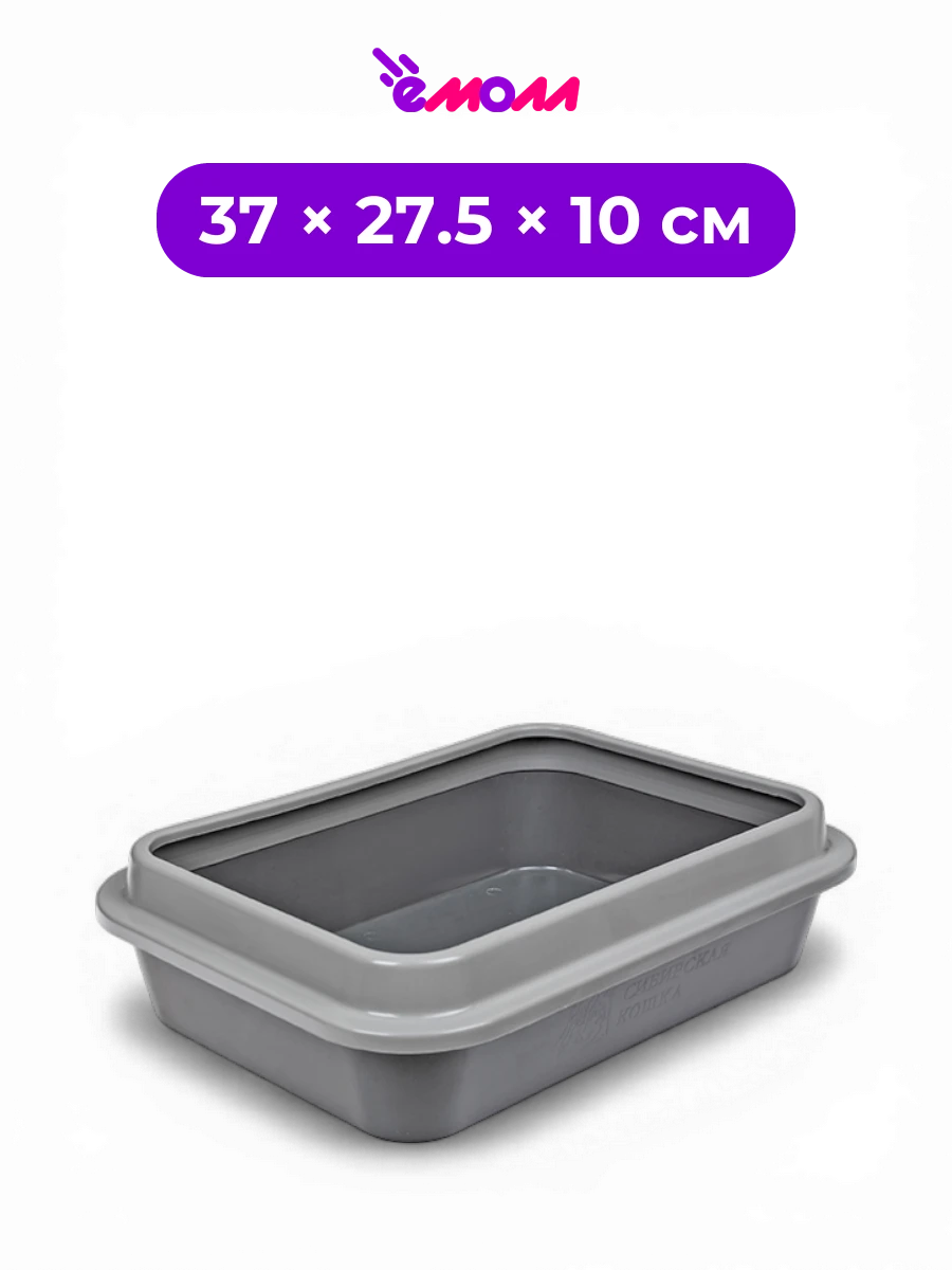 СИБИРСКАЯ КОШКА туалет для кошек с бортиком пепельный полипропиленовый Стандарт 37 × 27.5 × 10 см