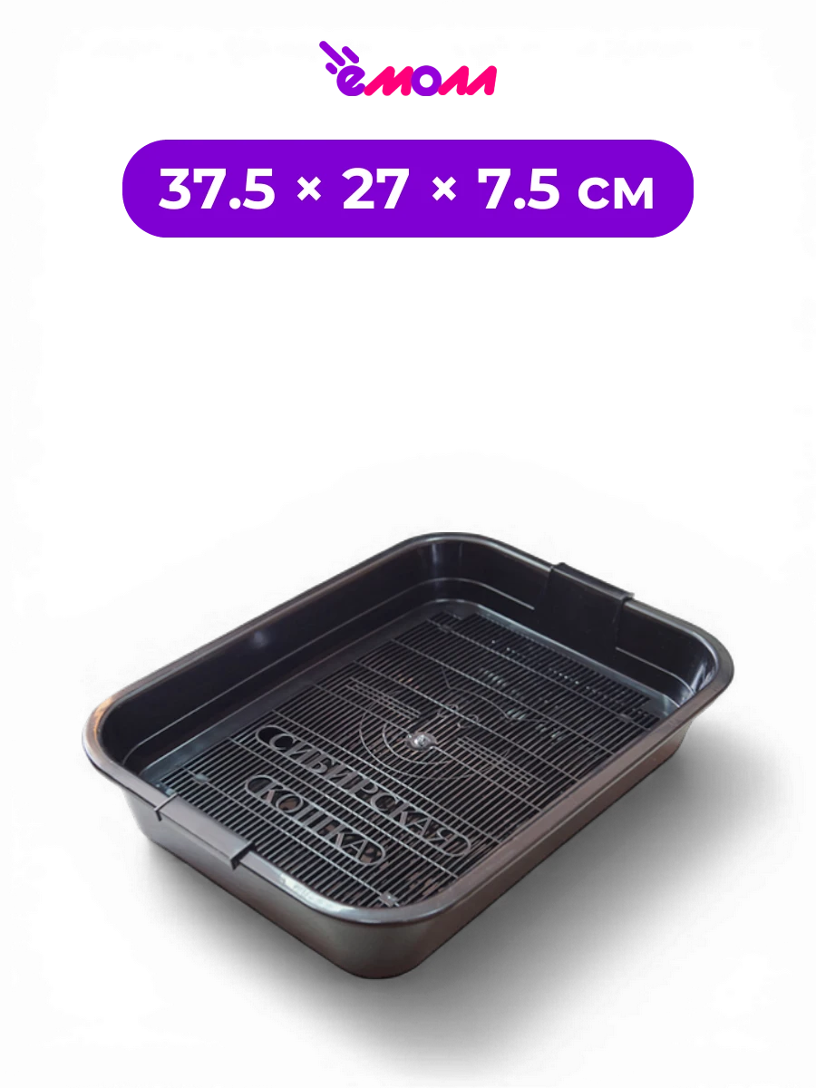 Лоток с невысоким бортиком (примерно 7,5–9,5 см) удобен как для котят, так и для взрослых кошек средних размеров. Компактные габариты основания — около 37,5 × 27 см.