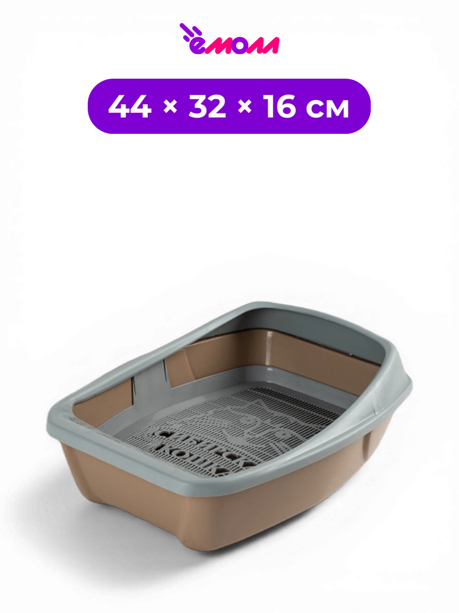 СИБИРСКАЯ КОШКА туалет лоток для кошек глубокий с сеткой и бортом Евро капучино 44 × 32 × 16 см