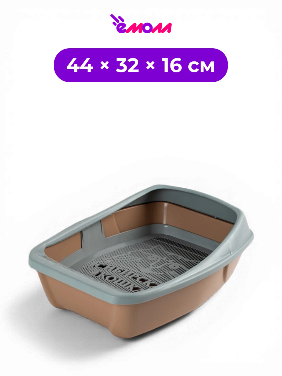 СИБИРСКАЯ КОШКА туалет лоток для кошек глубокий с сеткой и съемным бортиком капучино Евро 44 × 32 × 16 см
