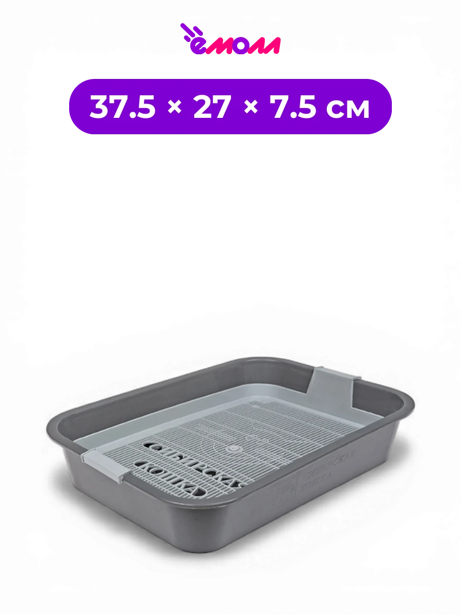СИБИРСКАЯ КОШКА туалет лоток для кошек и котят с съемной сеткой пепельный 37.5 × 27 × 7.5 см