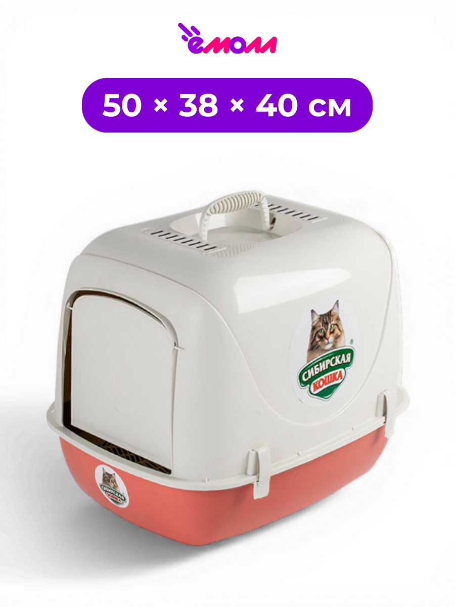 СИБИРСКАЯ КОШКА туалет закрытый домик для кошек с дверцей и съемной сеткой Альбус 50 × 38 × 40 см коралловый