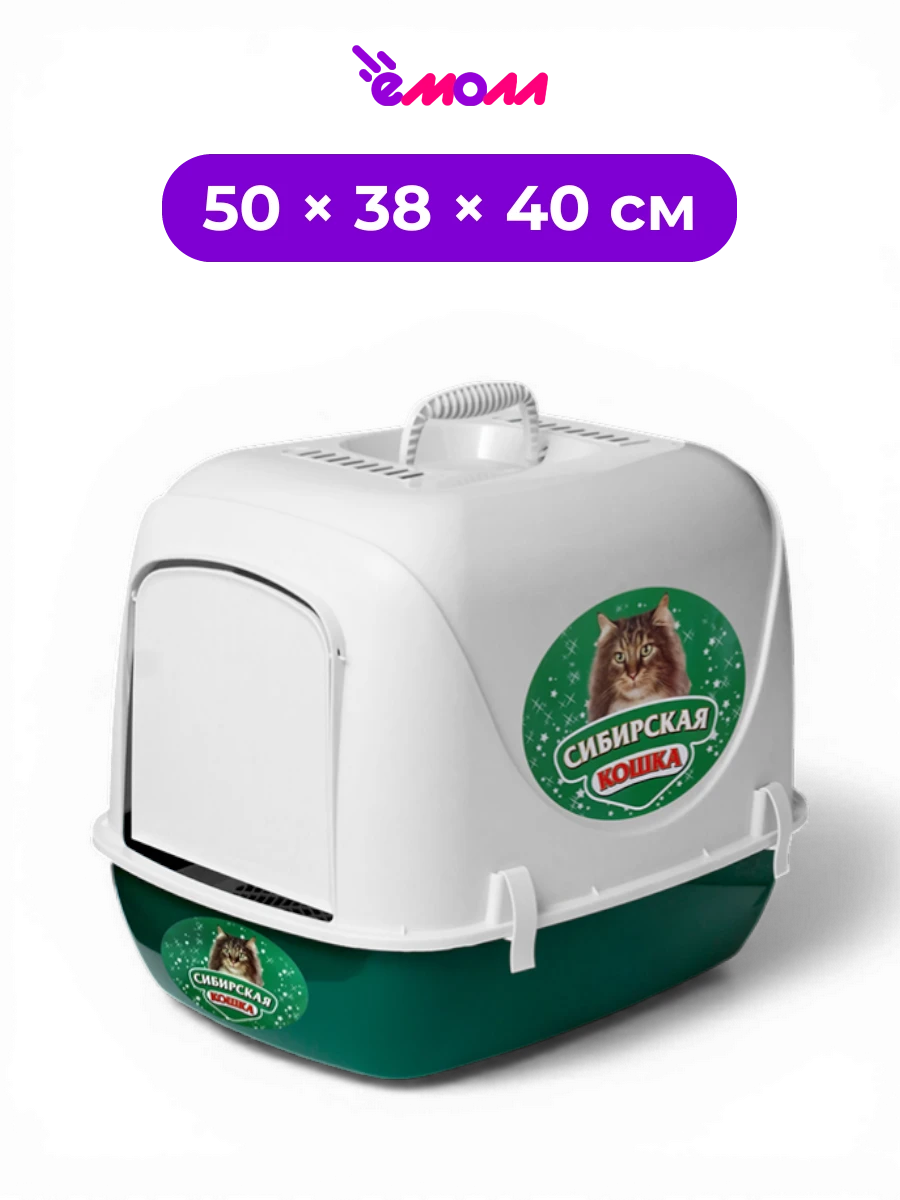 СИБИРСКАЯ КОШКА туалет закрытый лоток домик для кошек с дверцей угольным фильтром и решеткой Альбус 50 × 38 × 40 см зелёный
