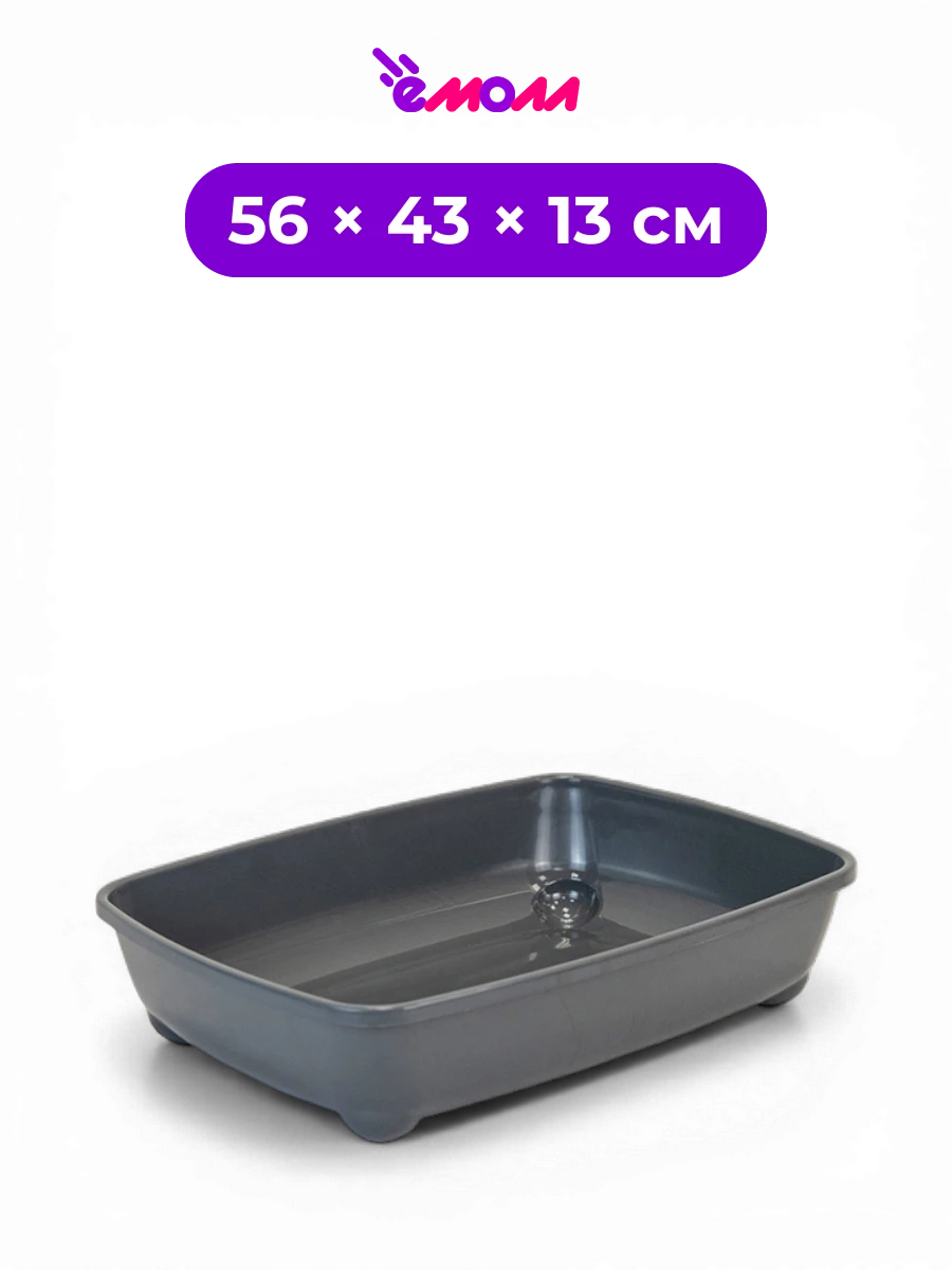 Цельнолитая конструкция без рамки и высокие бортики помогают удерживать наполнитель внутри, а просторная форма даёт кошке возможность комфортно разворачиваться и закапывать.