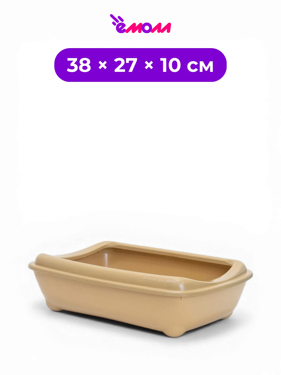 Zoo-M туалет лоток для кошек глубокий малый с высоким съёмным бортом бежевый 38 × 27 × 10 см