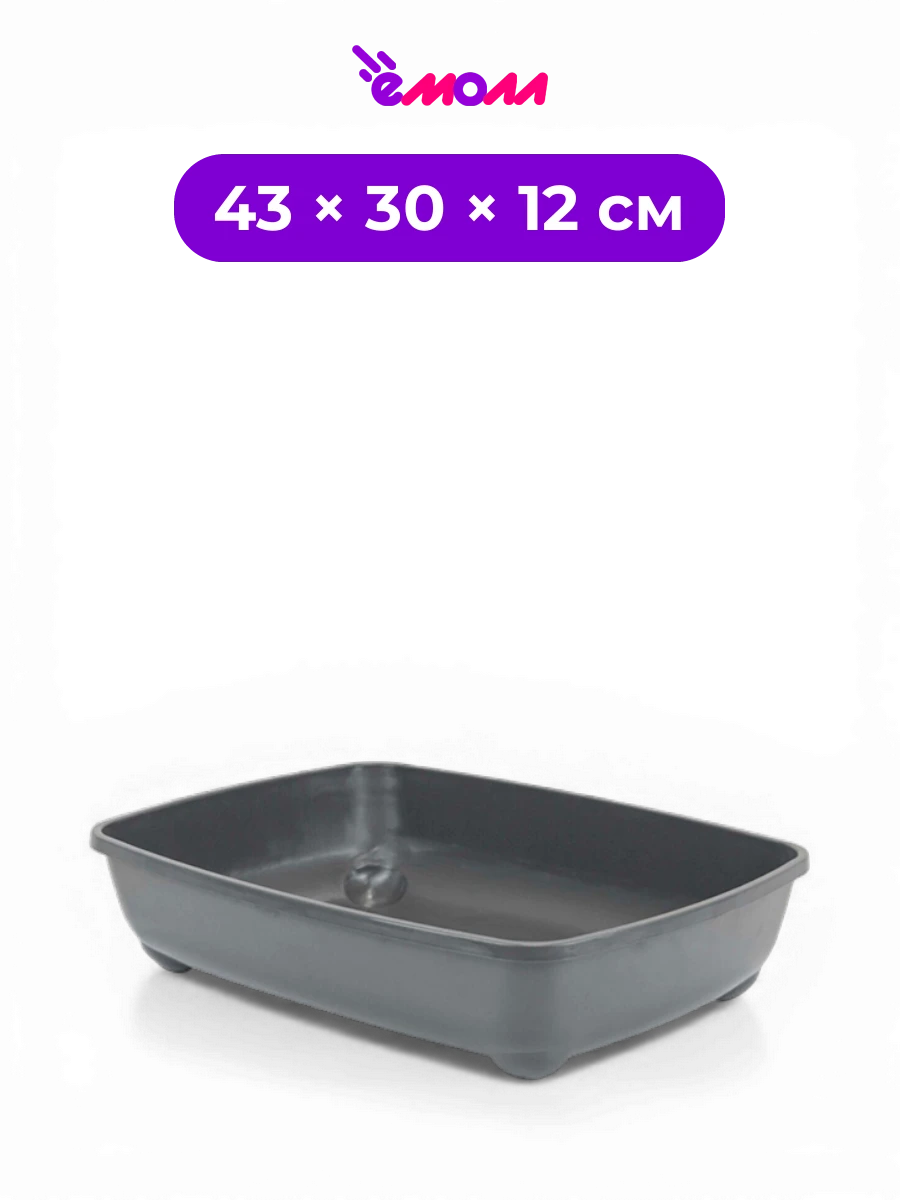 Высота стенок 12 см позволяет насыпать достаточный слой наполнителя и помогает удерживать его внутри, особенно если питомец любит активно копать. Лоток можно использовать с древесными, комкующимися и силикагелевыми наполнителями.