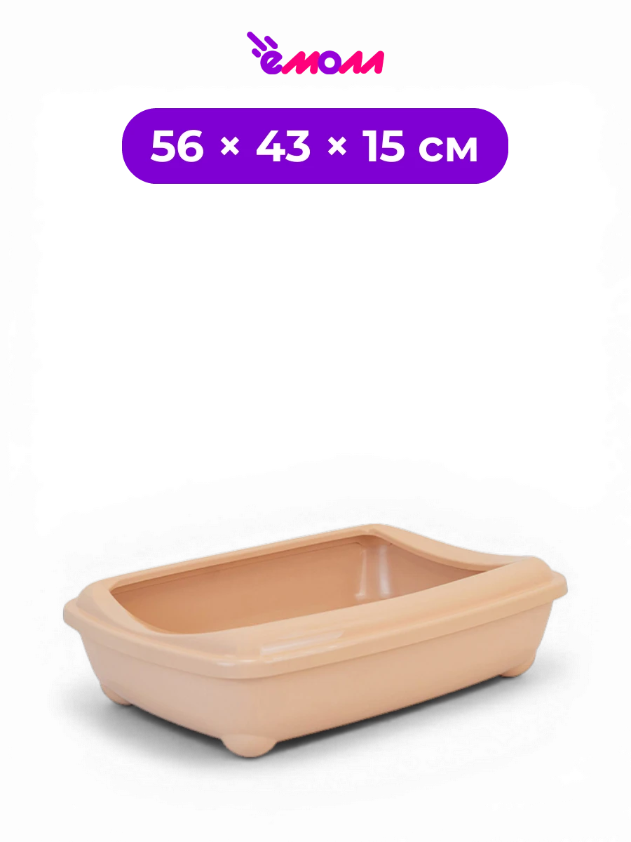 Zoo-M туалет лоток для кошек глубокий со съемным бортом из полипропилена Большой 56 × 43 × 15 см бежевый