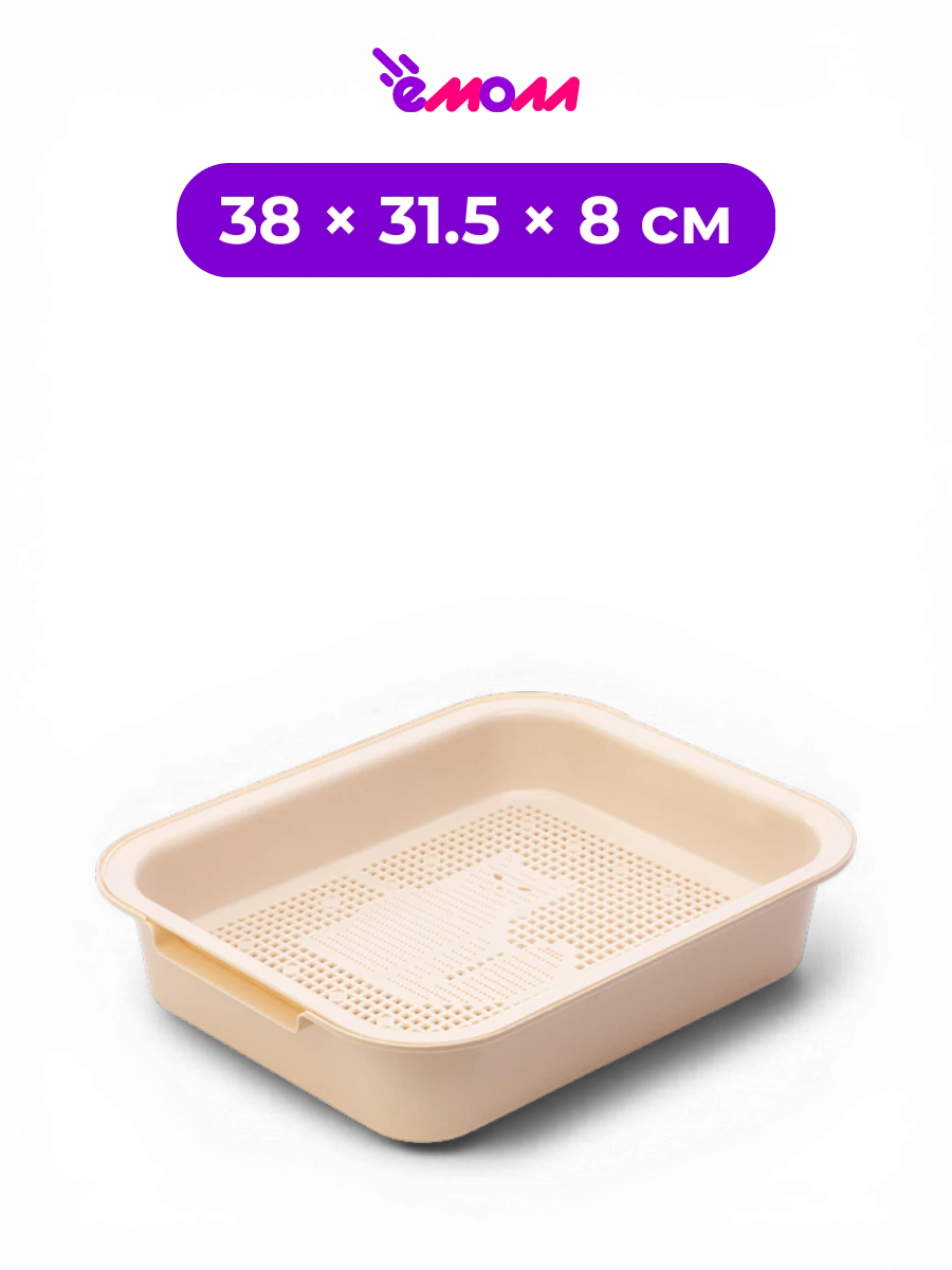 Лоток выполнен из прочного полипропилена: пластик гладкий, не впитывает запахи, без резкого химического запаха и легко моется водой или обычными моющими средствами.
