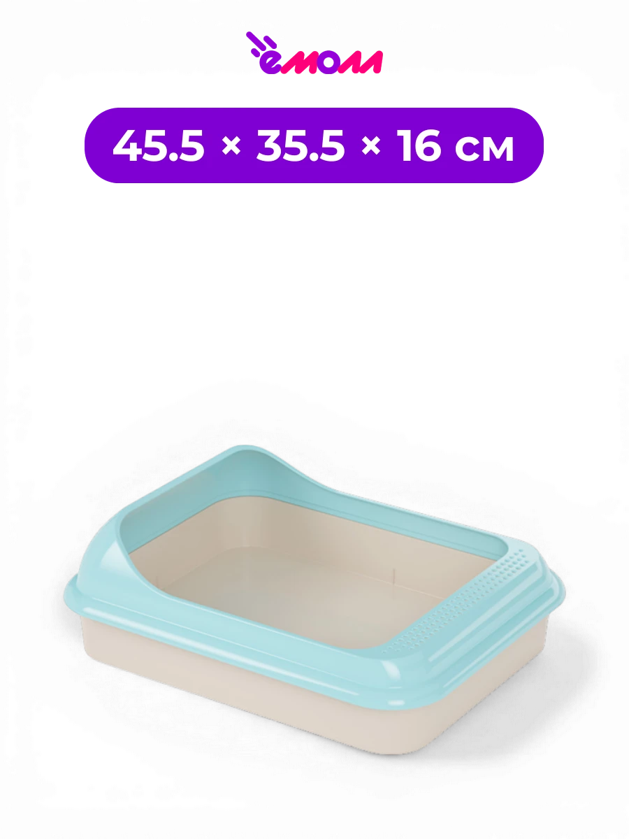 Бортик снижает разбрасывание наполнителя, когда кошка активно закапывает, и фиксируется на лотке надёжными защёлками. Обтекаемая форма без острых углов делает лоток безопасным и удобным для питомца, а компактные размеры позволяют разместить его даже в небольшом помещении.