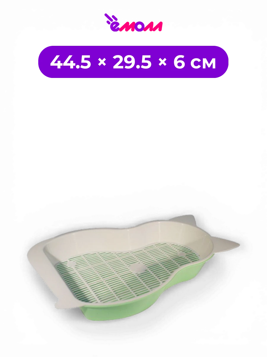 Лоток выполнен из прочного нетоксичного пластика (полипропилен), который не впитывает запахи и легко моется. Невысокие бортики удобны для взрослых кошек, котят и пожилых питомцев.