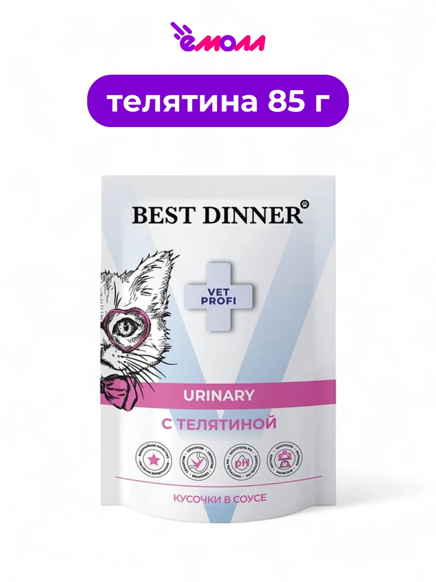 Best Dinner кусочки в соусе с телятиной для кошек Exclusive Vet Profi Urinary 85 г