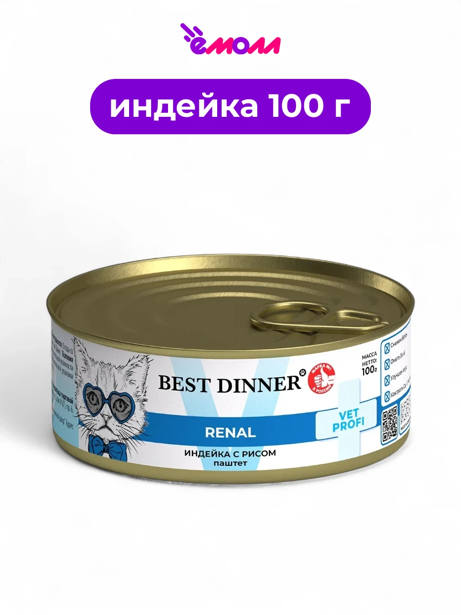 Best Dinner паштет для кошек с индейкой и рисом Exclusive VET PROFI Renal 100 г