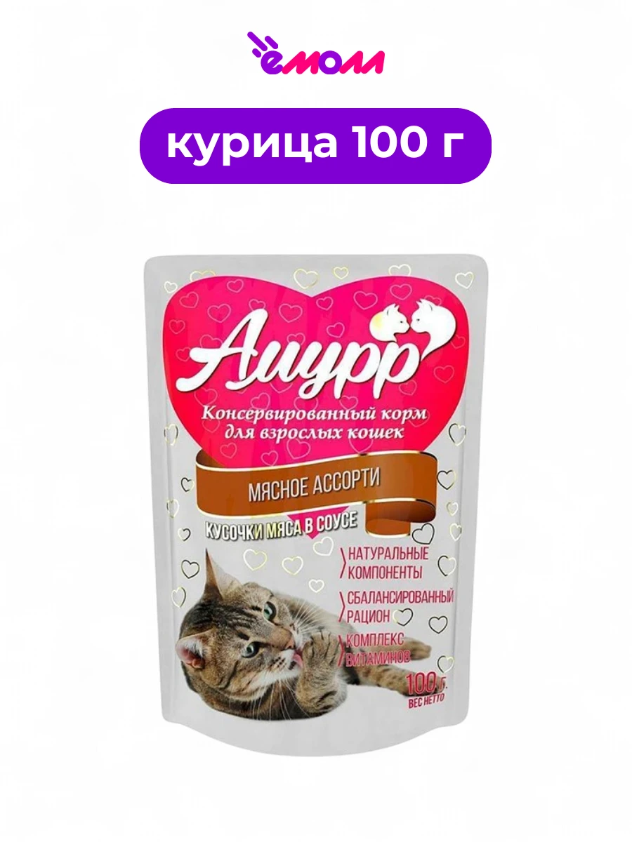 Амурр влажный корм для кошек с мясным ассорти в соусе — это сбалансированное питание, разработанное специально для взрослых кошек всех пород.