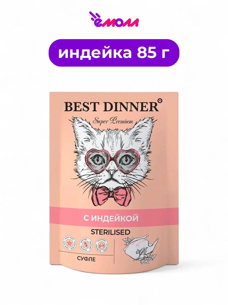 Best Dinner корм для стерилизованных кошек мясные деликатесы суфле с индейкой 85 г