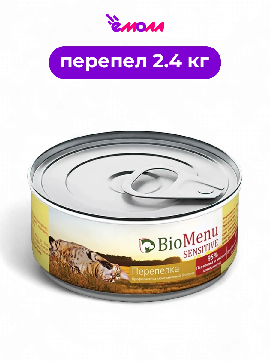 BioMenu консервы для кошек мясной паштет с перепелкой Sensitive 95% мяса 100 г 24 шт