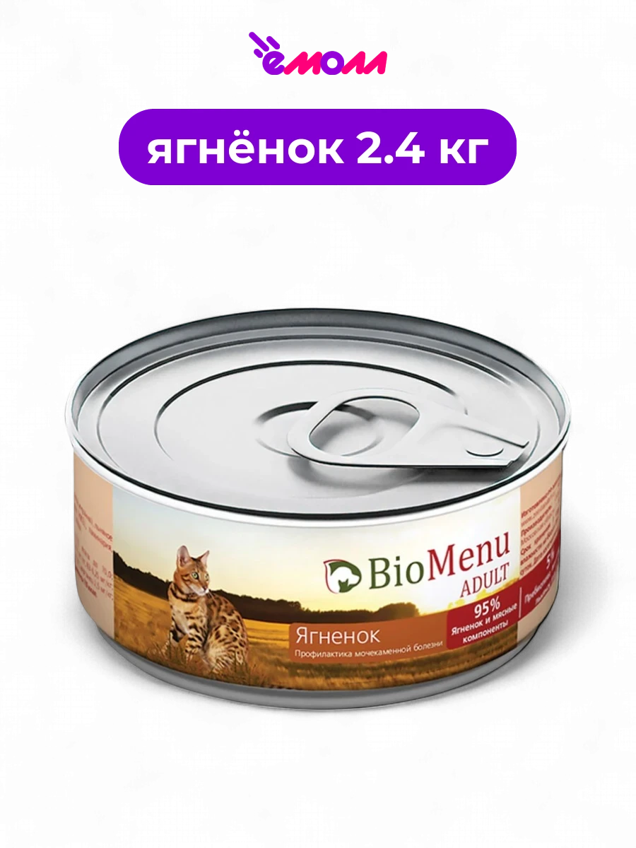BioMenu консервы для кошек мясной паштет с ягненком 95% мяса Adult 100 г 24 шт